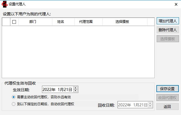 4.在“设置代理人”窗口的下半部分,可以设置代理的有效期。