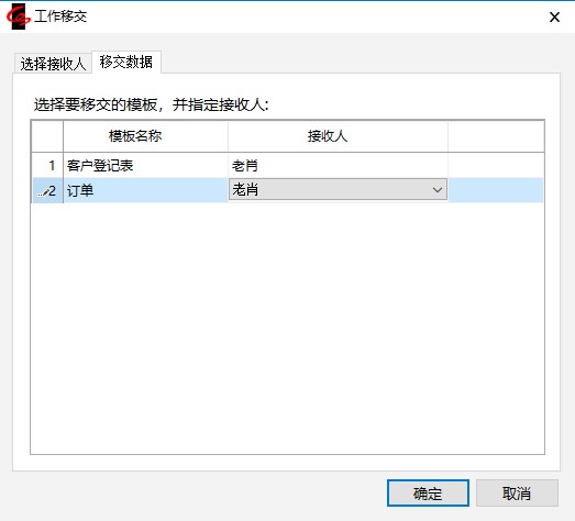 在弹出的窗口中选择要移交的模板,并指定每个模板的接收人。点击【确定】