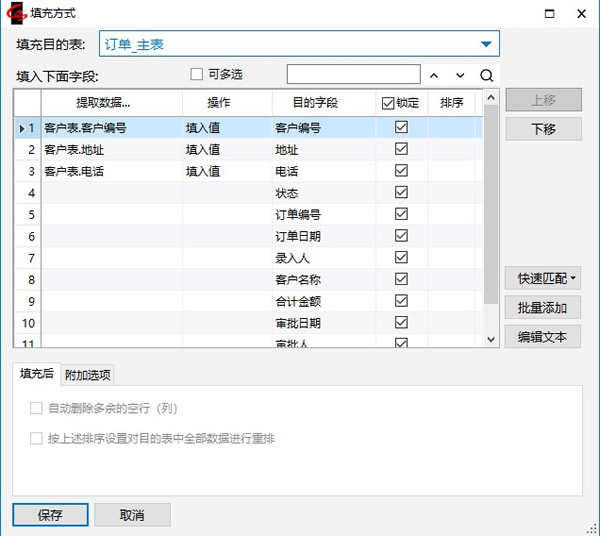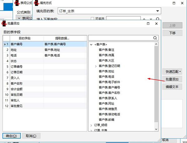 若需要填充的字段较多还可以通过【批量添加】、【快速匹配】按钮,快速设置填充字段。或点击【编辑文本】直接输入、复制粘贴。