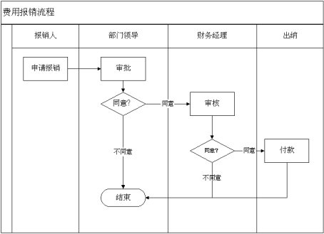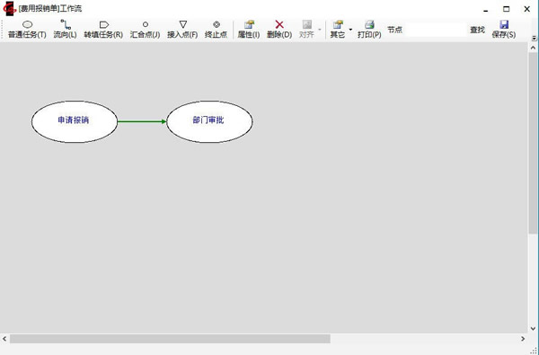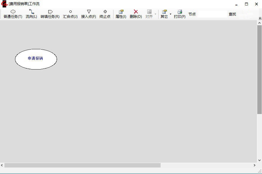 5.按【确定】,完成“申请报销”任务的定义,对话框关闭,回到工作流画板,会看到椭圆形中的文字变成了“申请报销”,如下图所示: