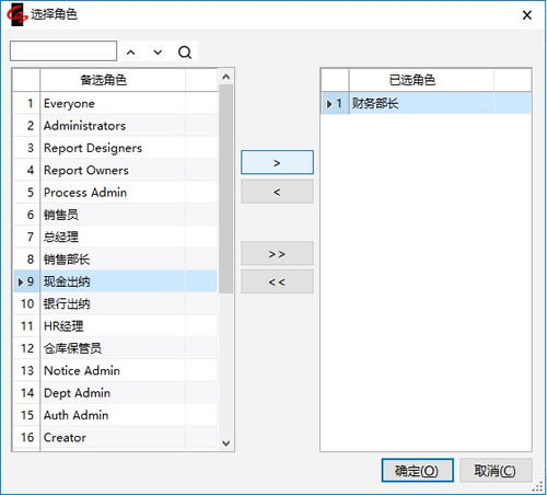 3.选中角色“财务部长”,按【确定】,回到“设置流程节点的执行权限”窗口。